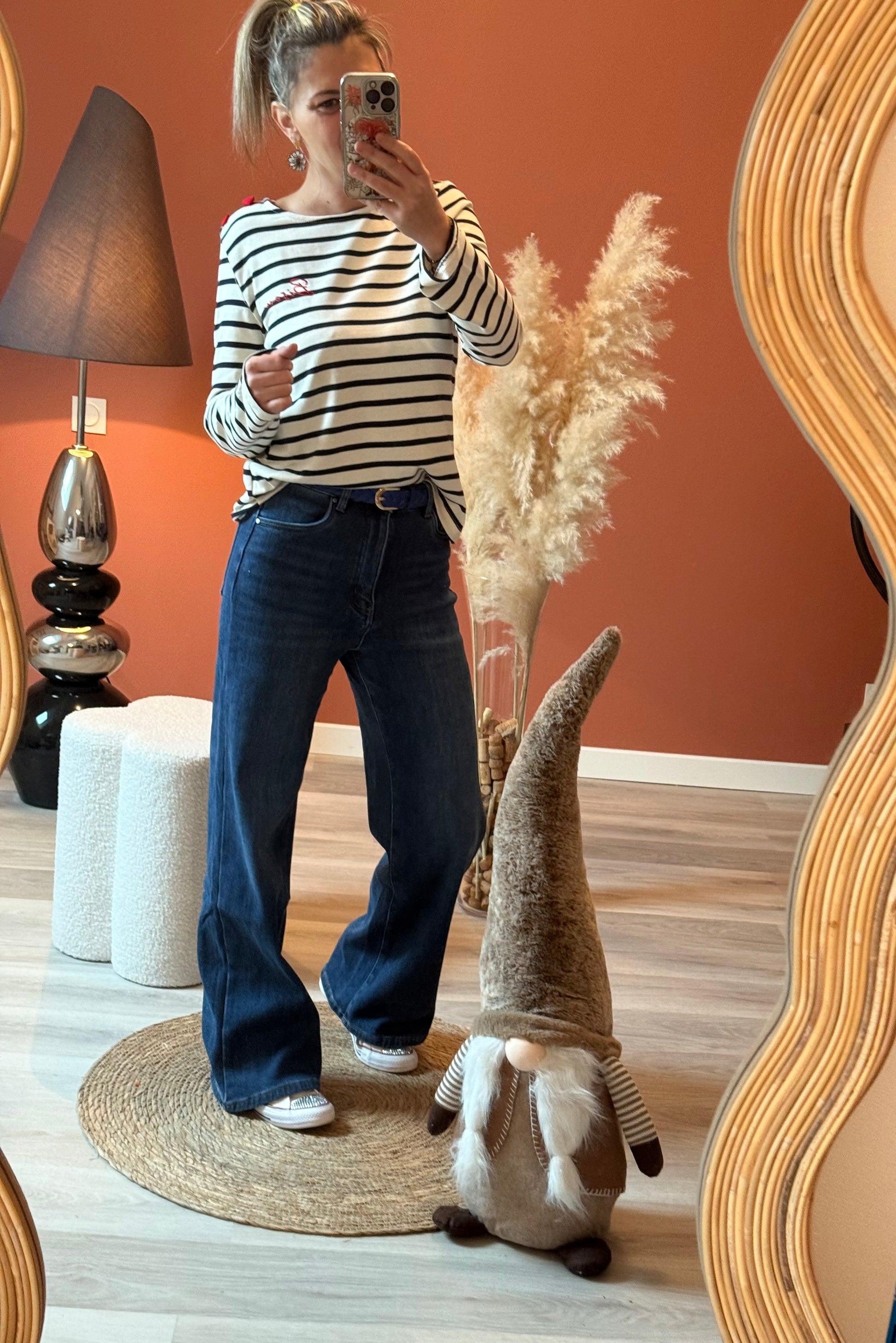 💋 Top Marinière “Bisou” – Détails Romantiques et Touche Marine