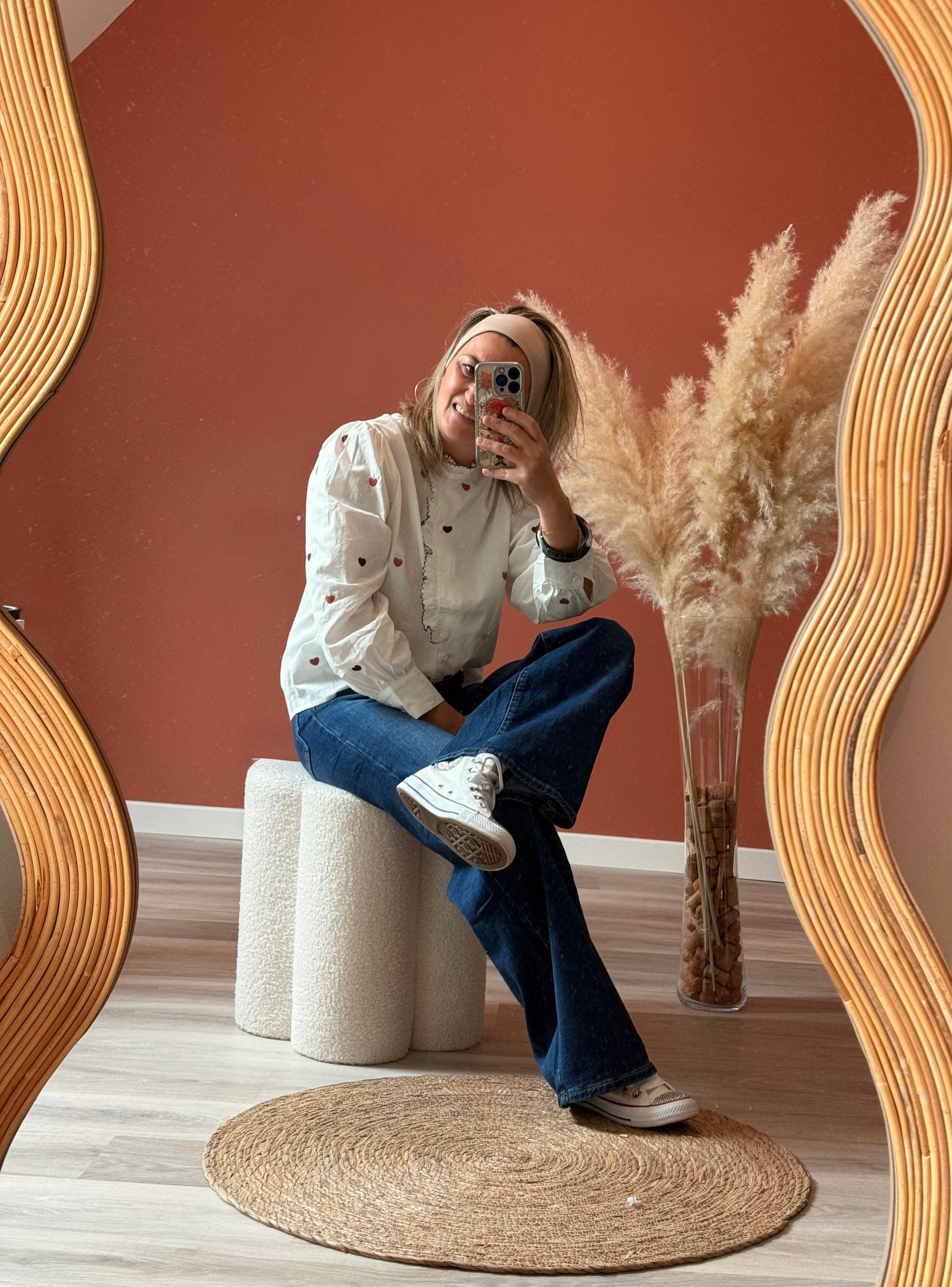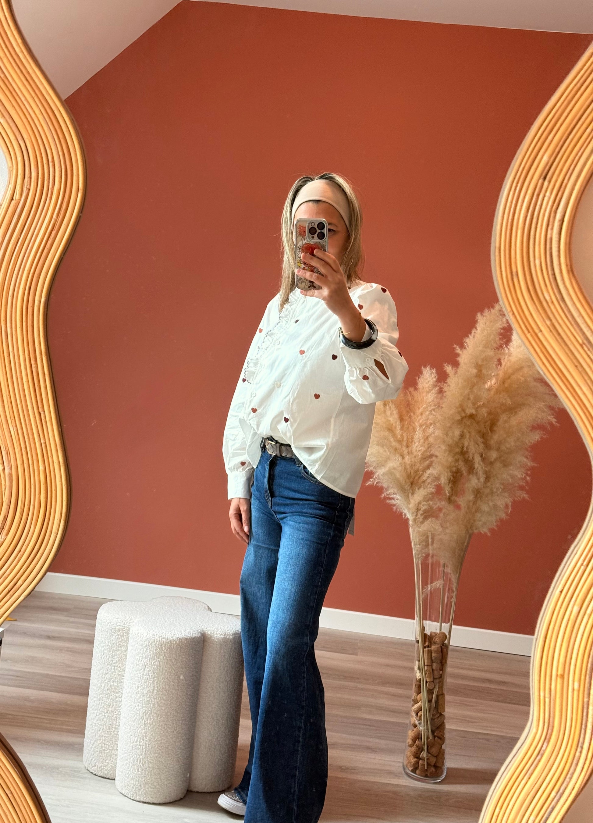 🧸 Apportez une touche romantique et tendance à votre garde-robe avec cette chemise élégante ornée de délicats cœurs brodés. Conçue dans un tissu léger et agréable à porter, elle allie confort et style. Parfaite aussi bien rentrée dans un pantalon qu’ouverte sur un top, idéale pour une tenue décontractée chic avec un jean ou plus habillée avec une jupe 🎀