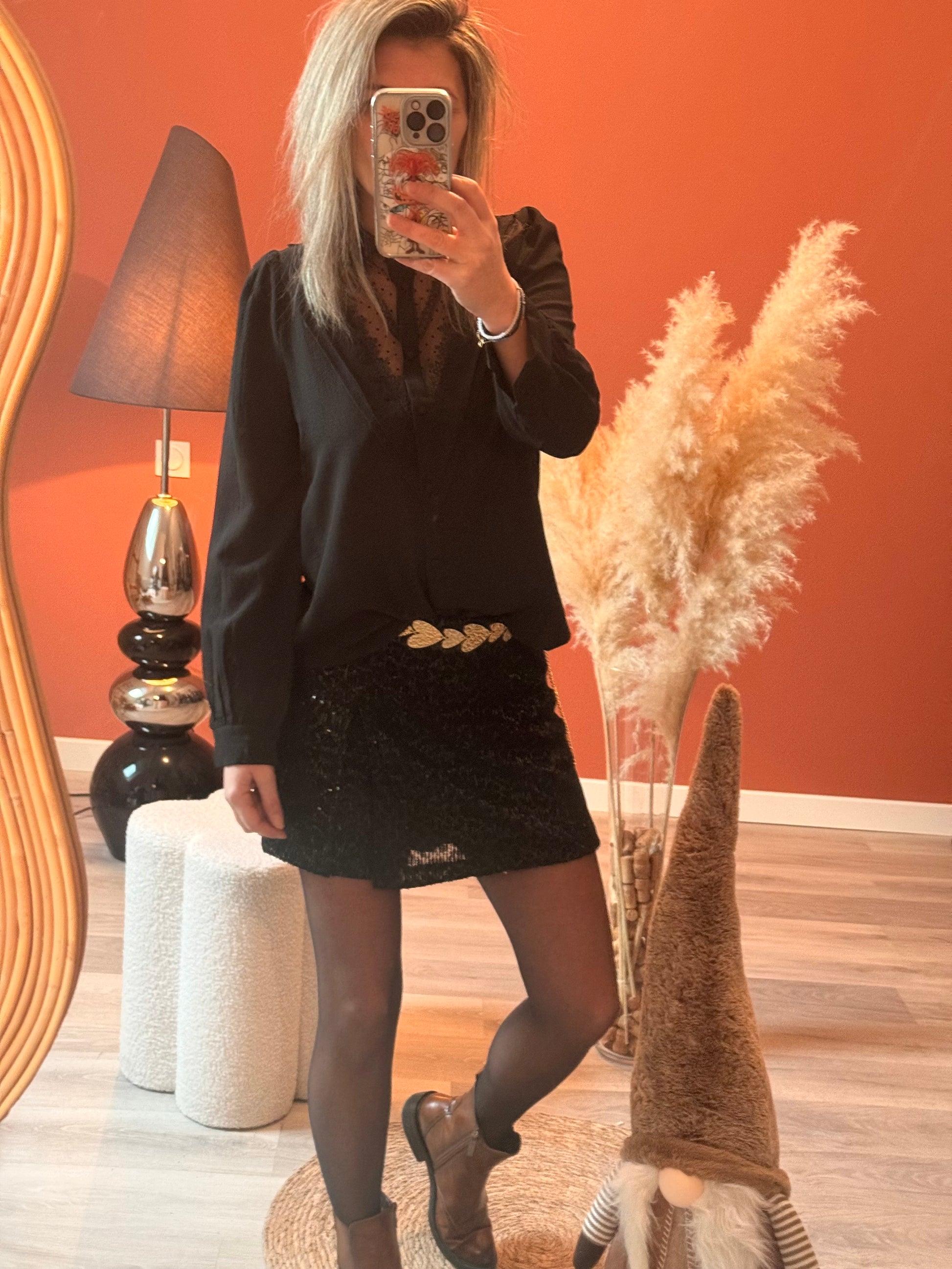 Cette chemise allie chic intemporel et dĂ©tails raffinĂ©s. Son devant en voile transparent parsemĂ© de plumetis met dĂ©licatement en valeur un empiĂšcement en dentelle subtilement travaillĂ©, crĂ©ant un dĂ©colletĂ© fĂ©minin sans ĂȘtre trop dĂ©voilĂ©. Le col classique et la patte de boutonnage ton sur ton ajoutent une touche de sobriĂ©tĂ© pour Ă©quilibrer lâensemble.
