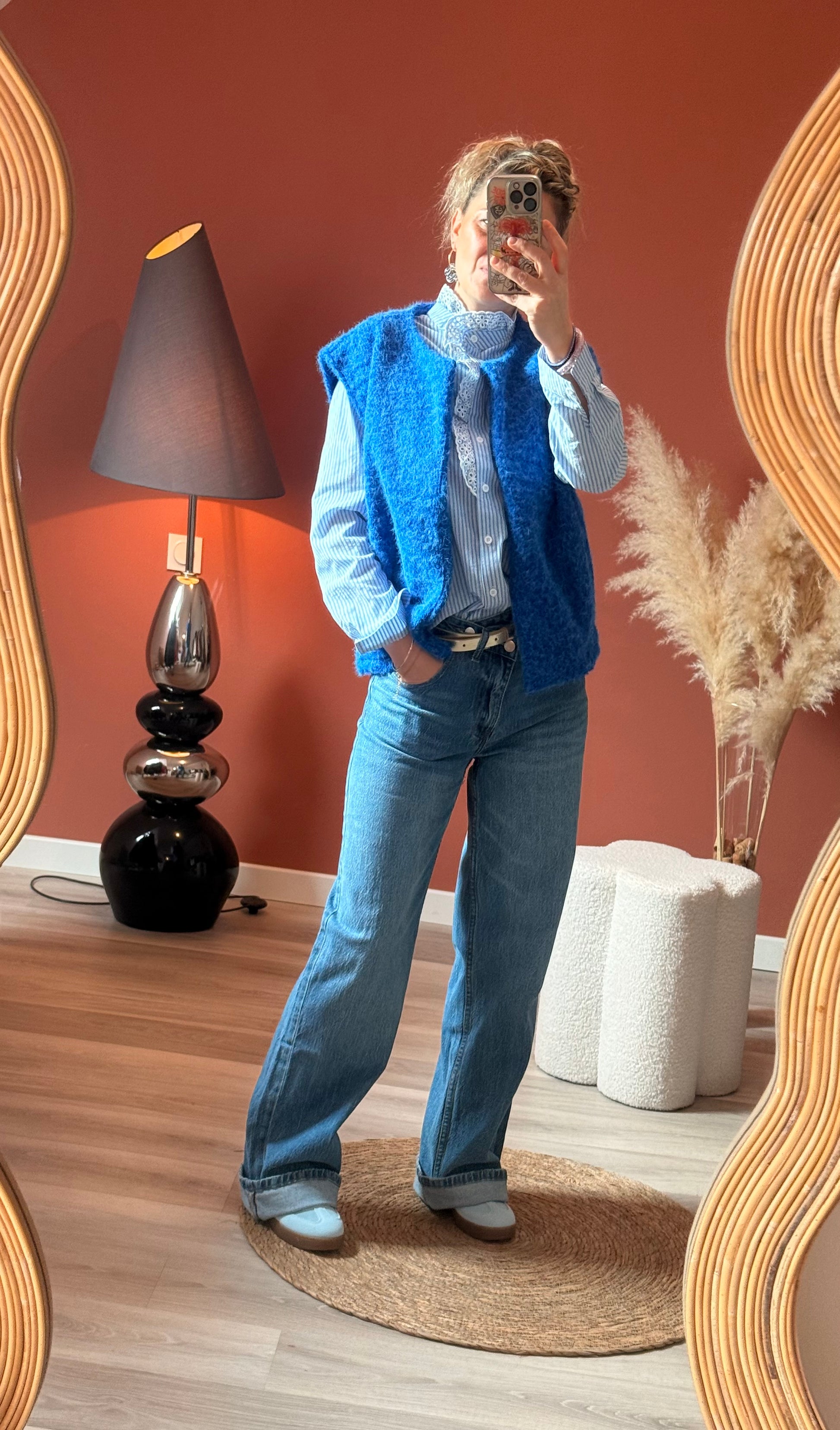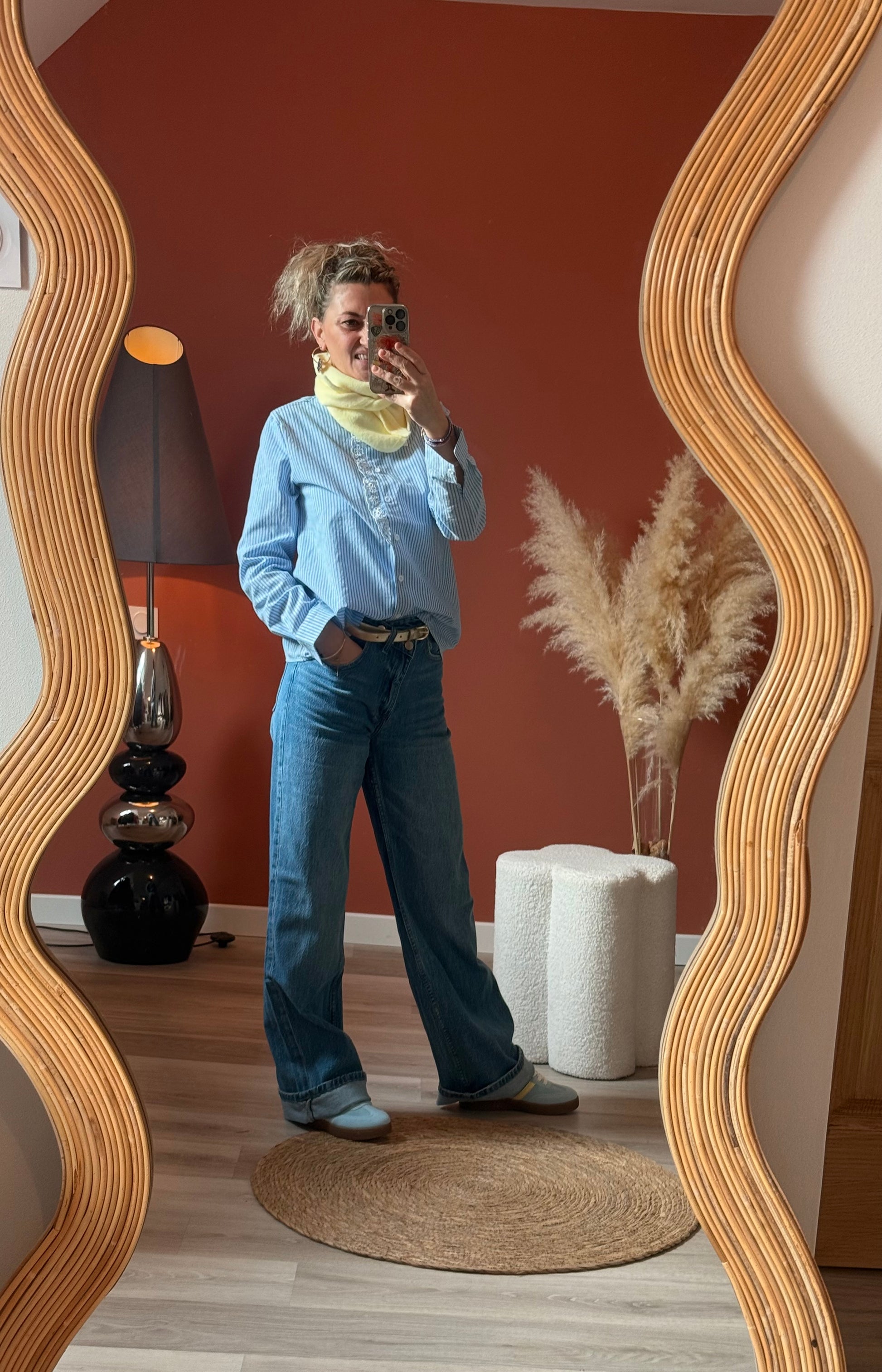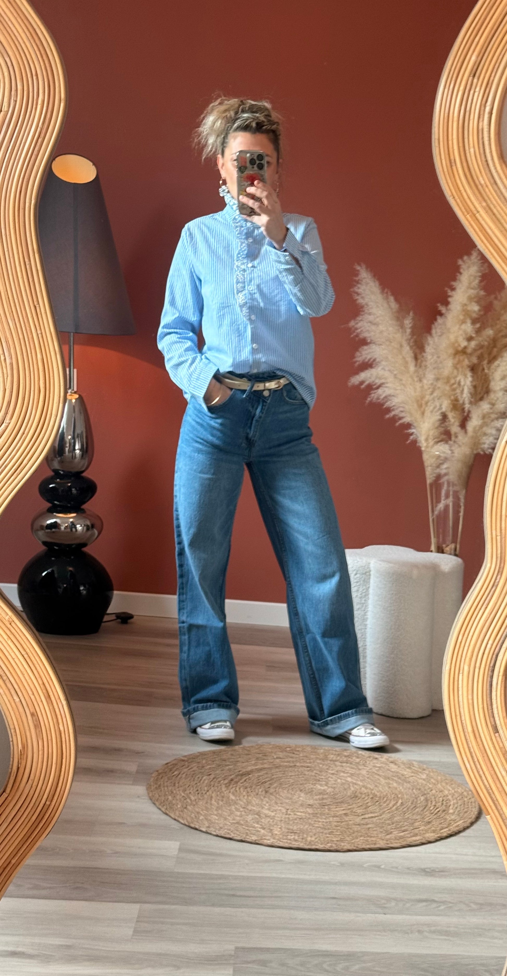 Craquez pour cette blouse au charme intemporel, parfaite pour un look chic et décontracté. Confectionnée dans un tissu léger et agréable à porter, elle se distingue par ses fines rayures bleu ciel et blanches qui apportent fraîcheur et élégance.