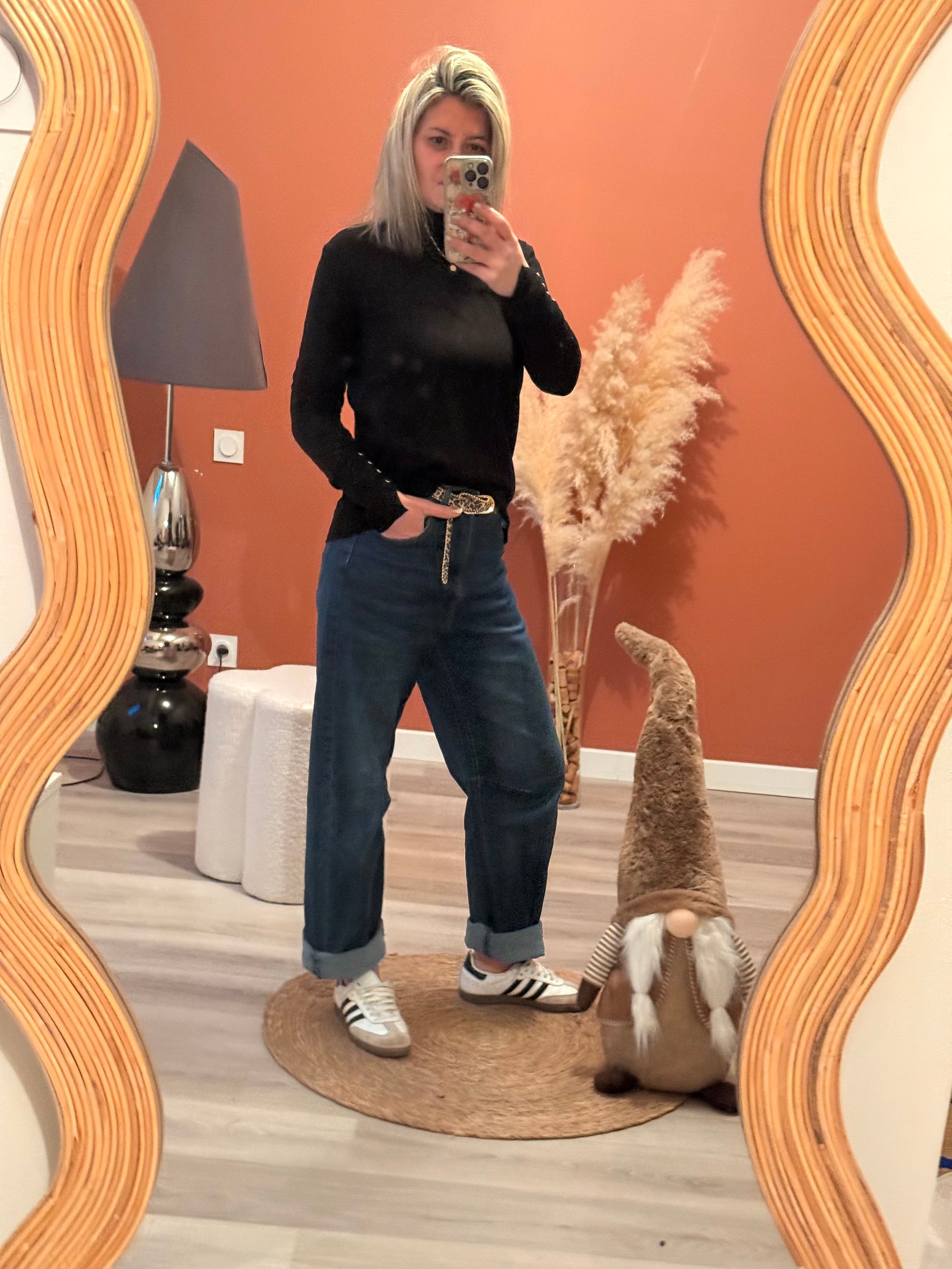 Sa coupe ajustée met en valeur la ligne du corps sans compromettre le confort, tandis que son col roulé apporte une touche chic et protège du froid avec style. Parfait sous une veste, un blazer ou porté seul pour un look minimaliste et moderne.