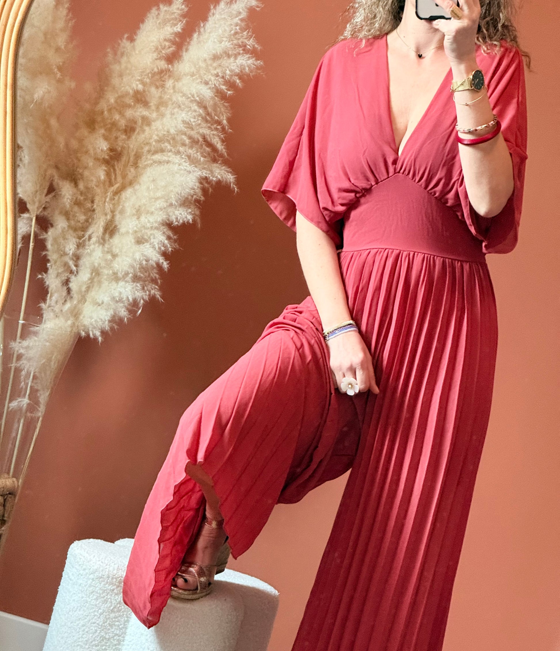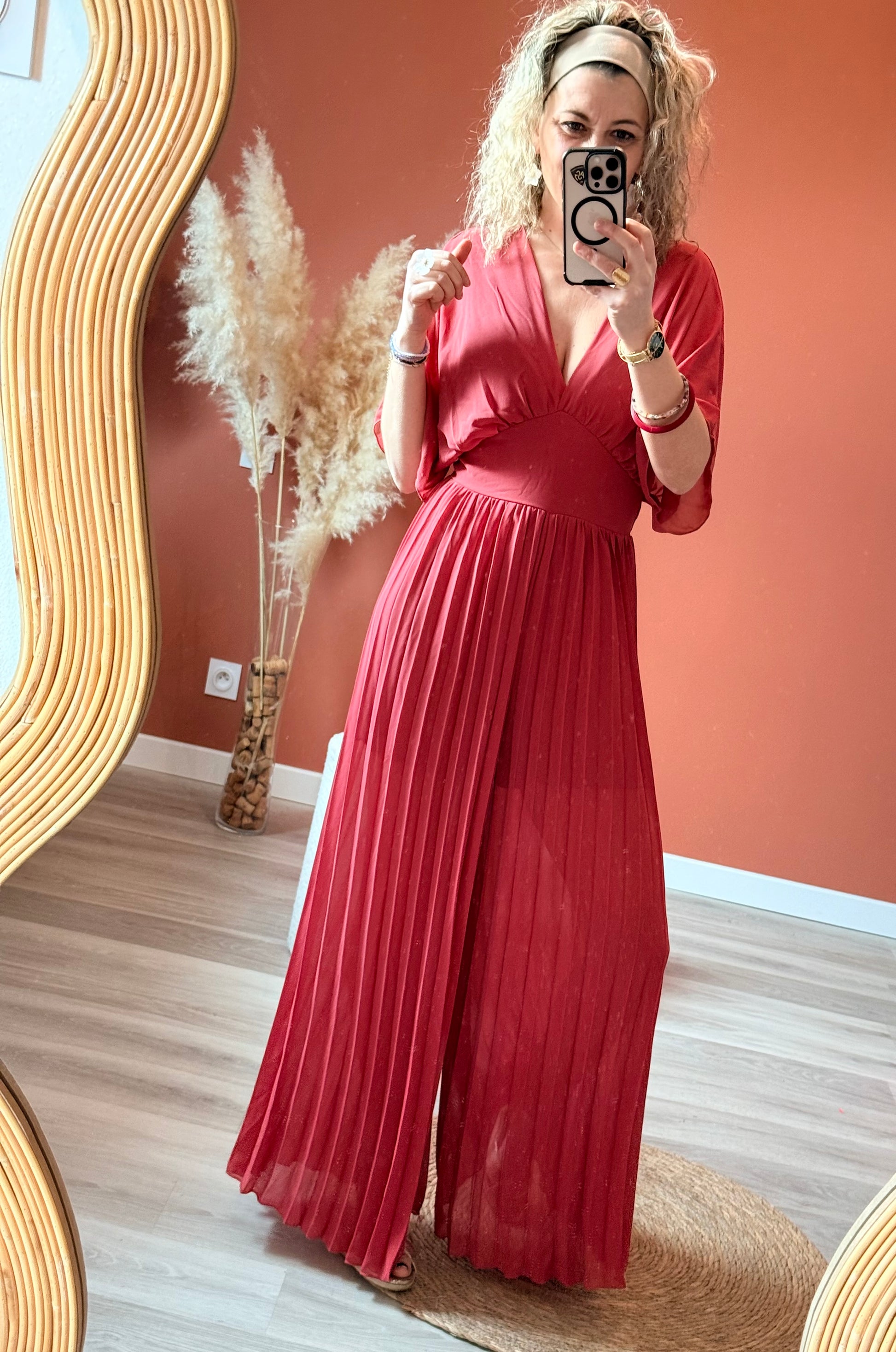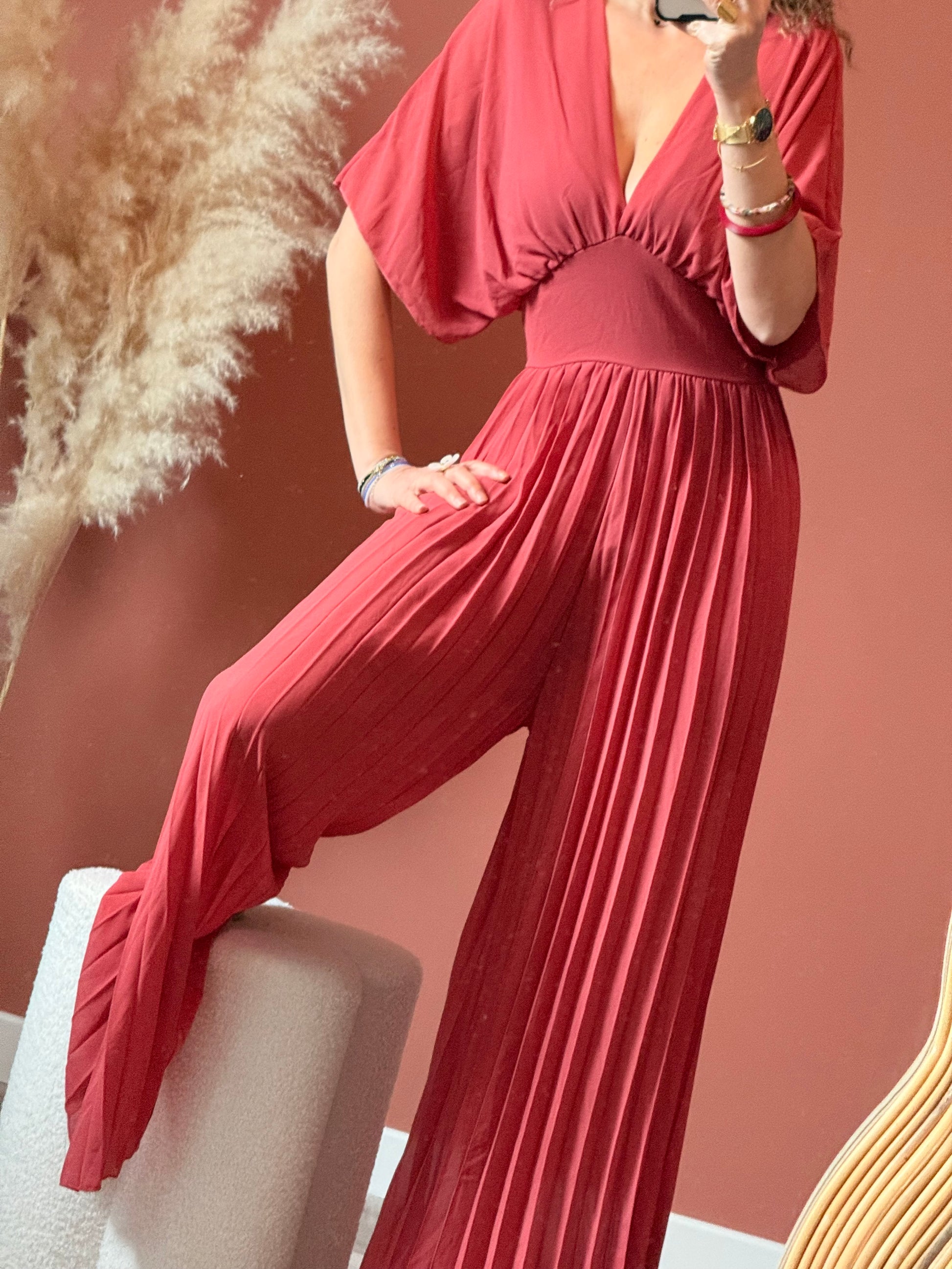 Chic et moderne, cette combinaison plissée légèrement transparente au niveau des jambes mais elle est joliment doublée par un short intégré. allie élégance et confort. Sa coupe fluide et son tissu délicatement plissé apportent du mouvement et subliment la silhouette avec légèreté.