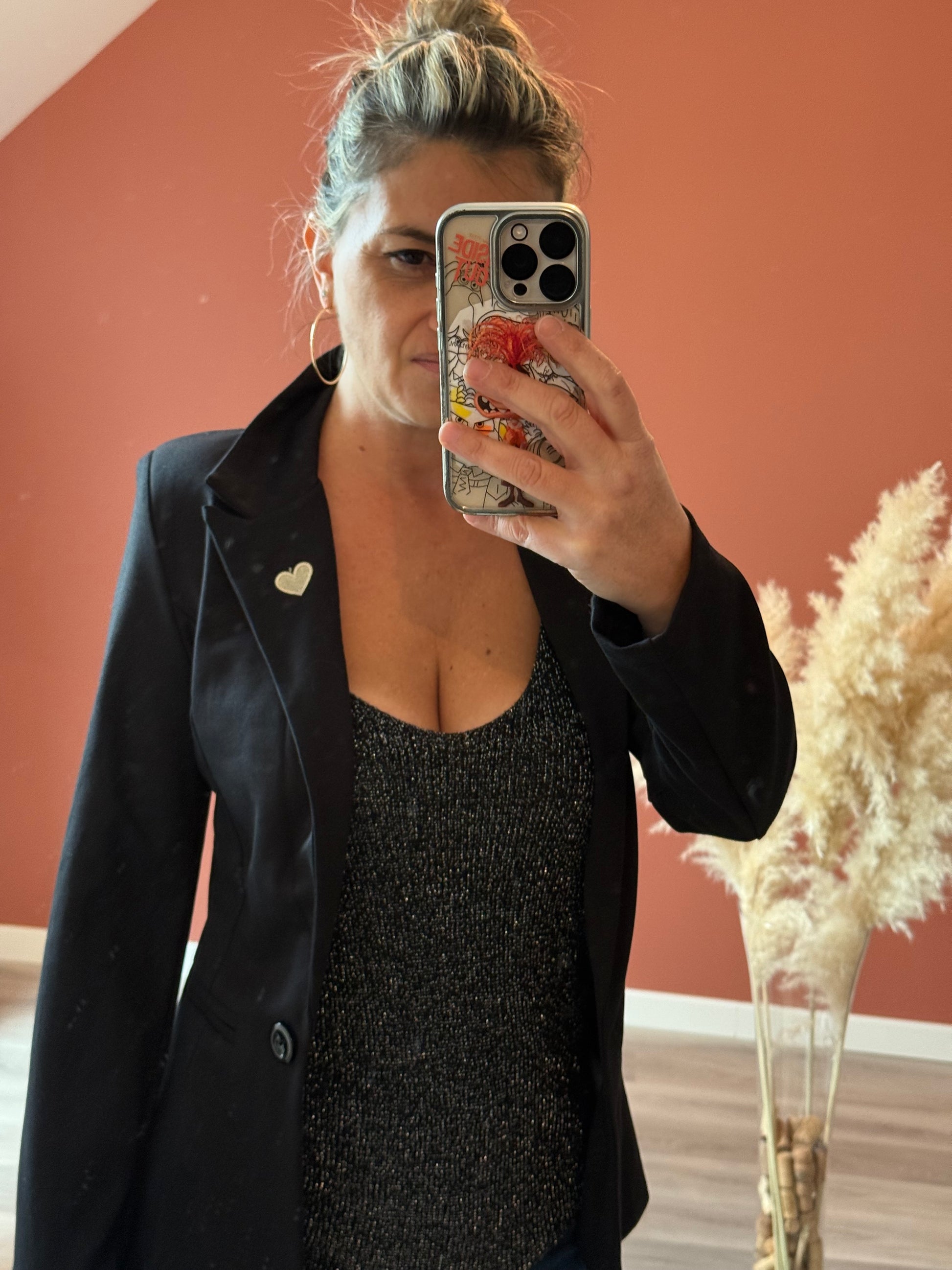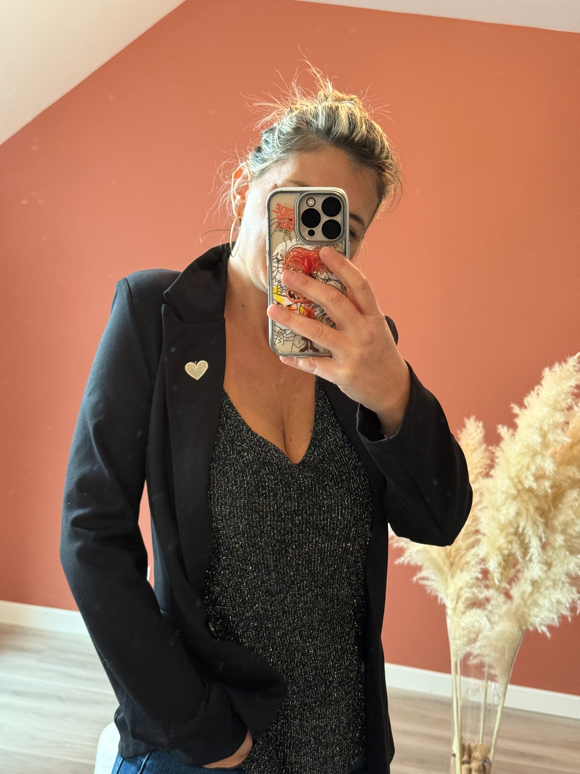 À porter avec un short, une jupe, un pantalon tailleur ou même un jean pour une allure effortless et brillante.
