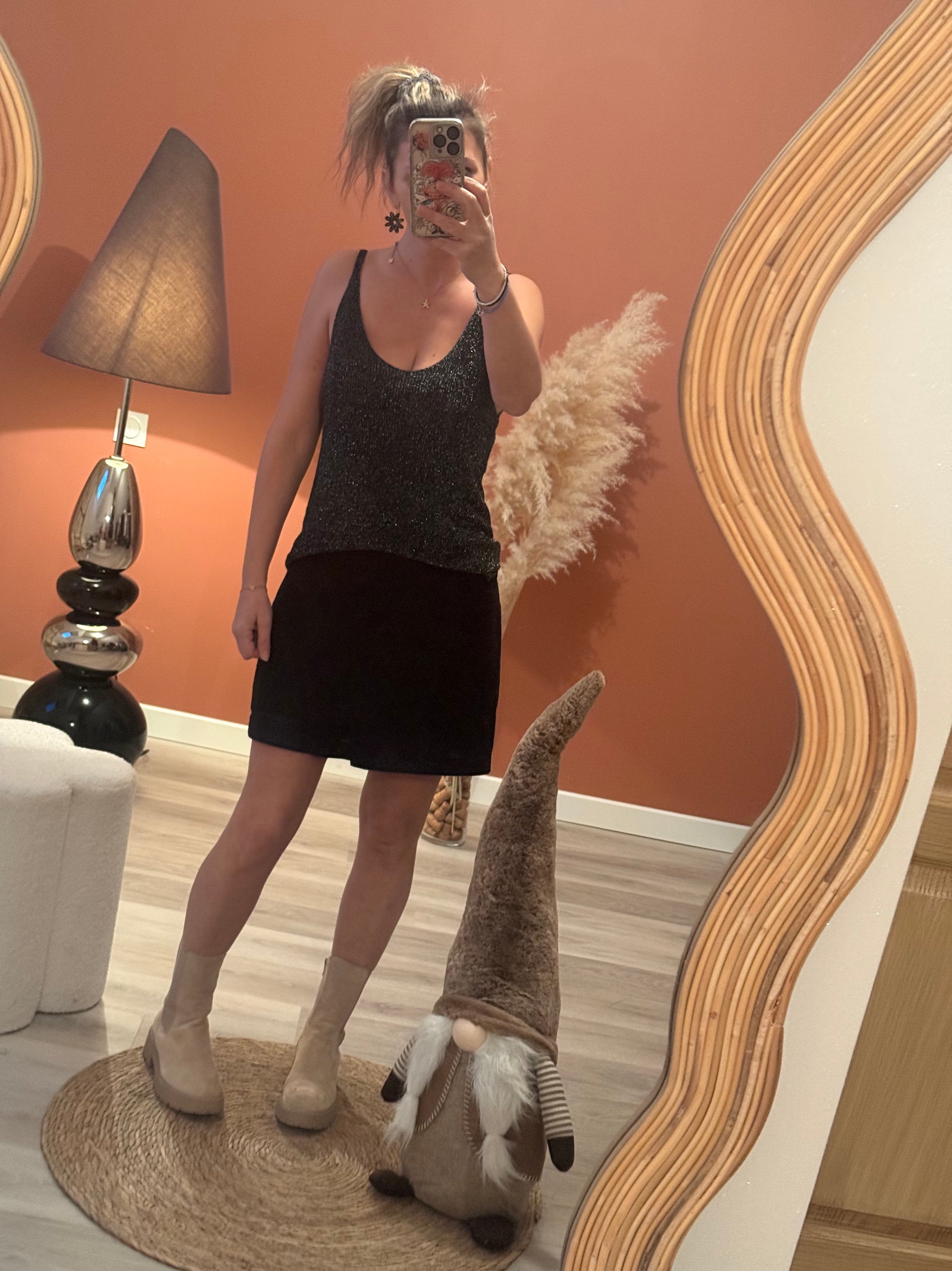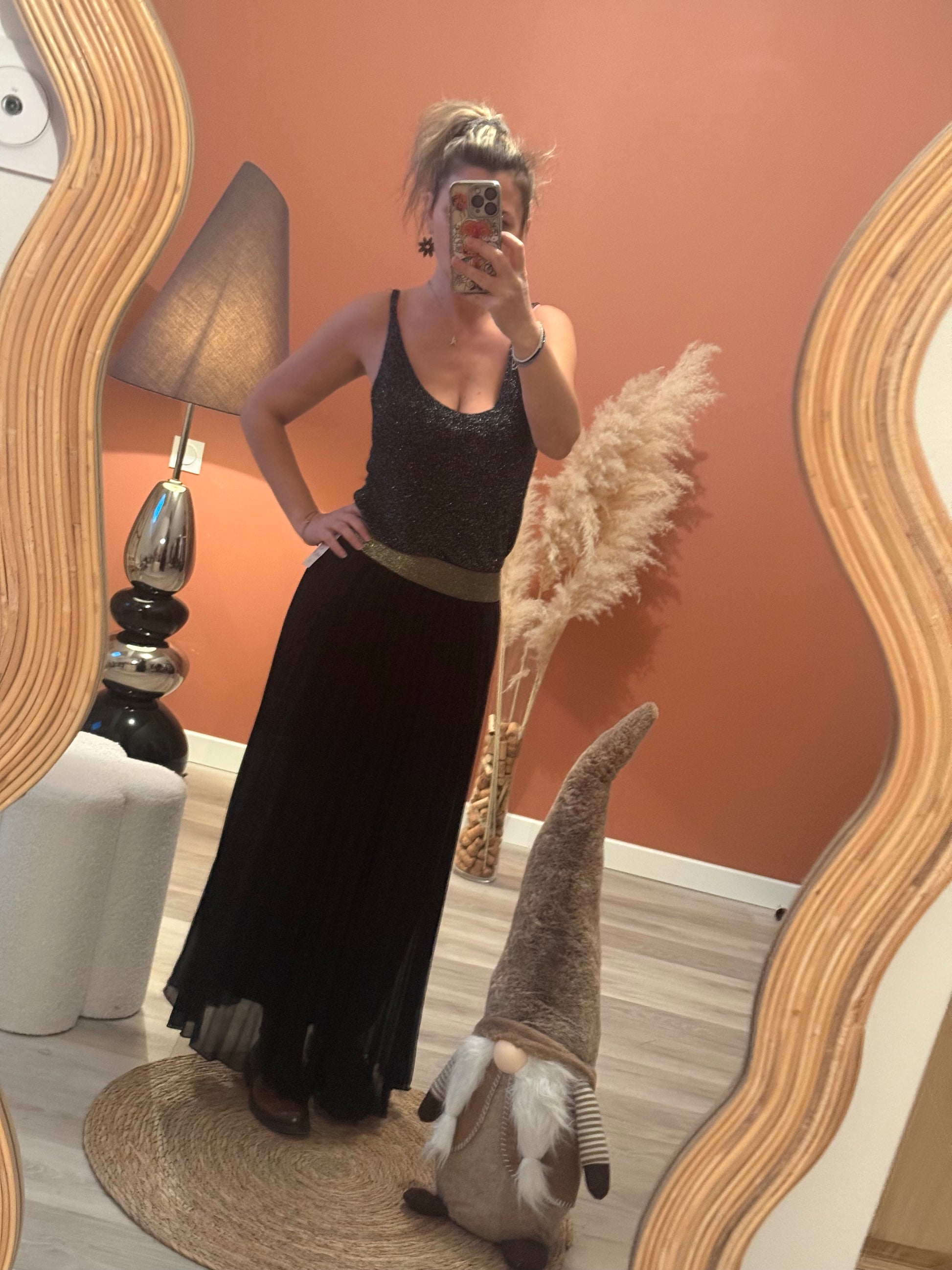 ✨ Débardeur fines bretelles pailleté. Effet lumière garanti. Léger, scintillant et ultra-féminin, ce débardeur pailleté est la pièce idéale pour donner du glam’ sans effort. Sa matière fine capte la lumière à chaque mouvement, et ses bretelles délicates apportent une touche chic et subtile.