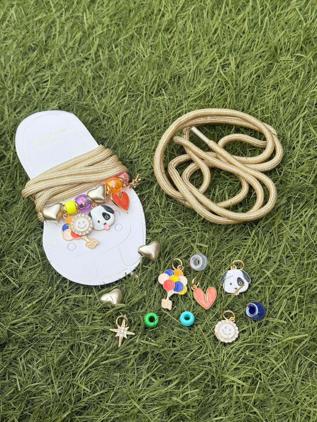 Apportez une touche brillante et unique à vos sneakers avec nos lacets dorés à charm’s amovibles. Idéals pour un total look stylé et décontracté, ils permettent de personnaliser vos chaussures en un clin d'œil. Les charm’s peuvent être retirés ou repositionnés comme bon vous semble, pour un style qui vous ressemble à 100 %.