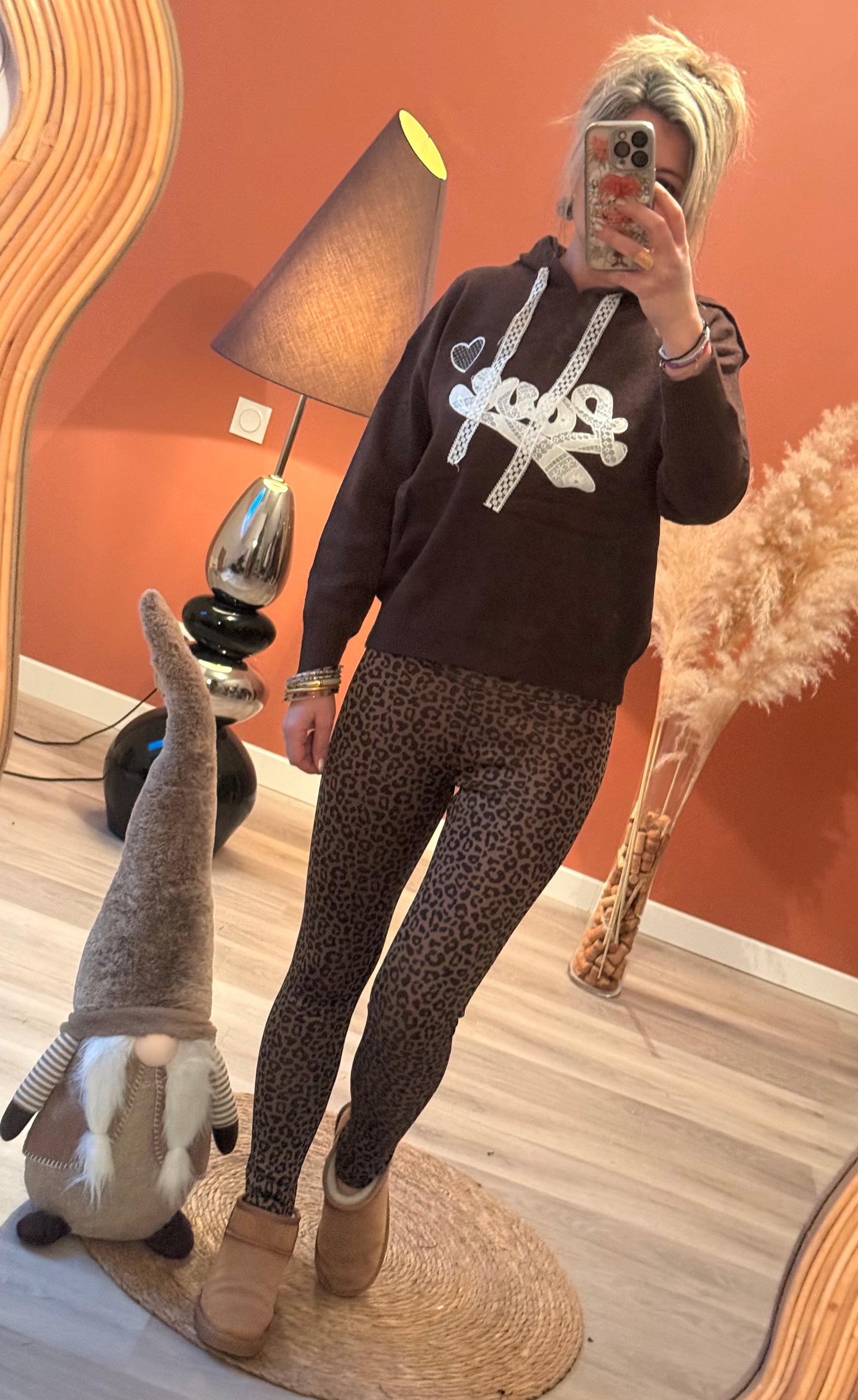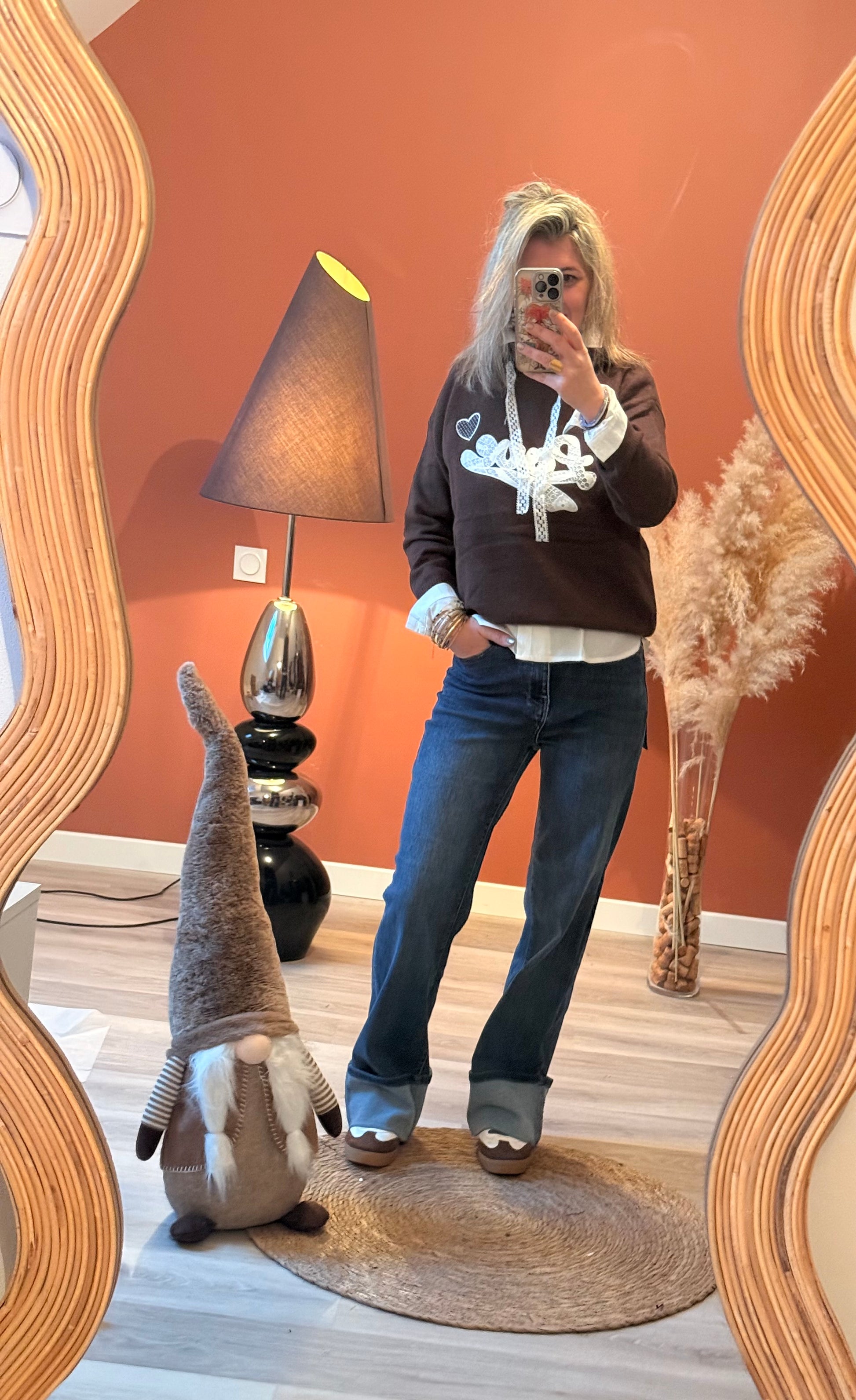Sweat cosy et tendance avec inscription “Love” en dentelle blanche et liens assortis. Confortable et féminin, il se porte facilement au quotidien pour un look casual chic. 🤍