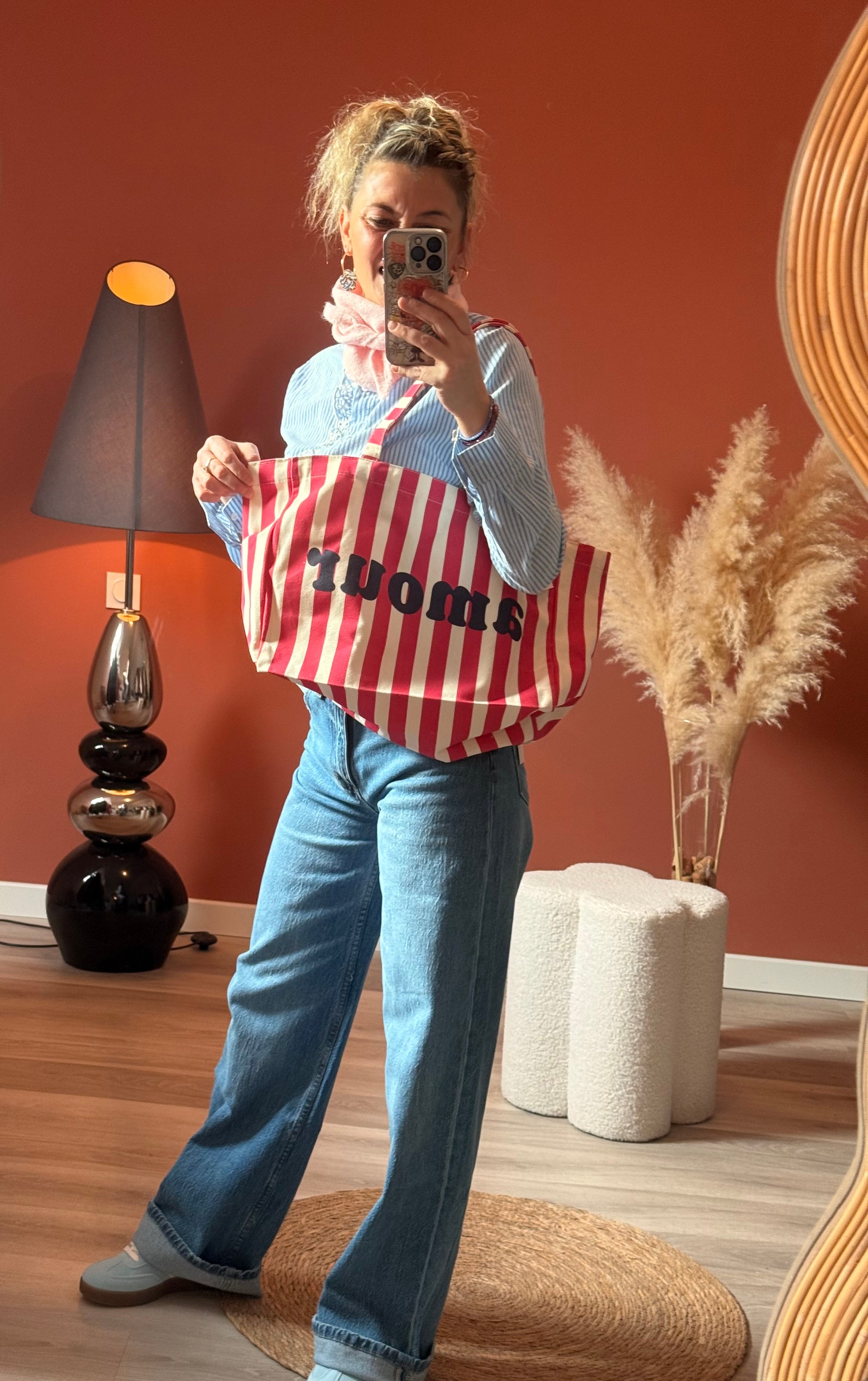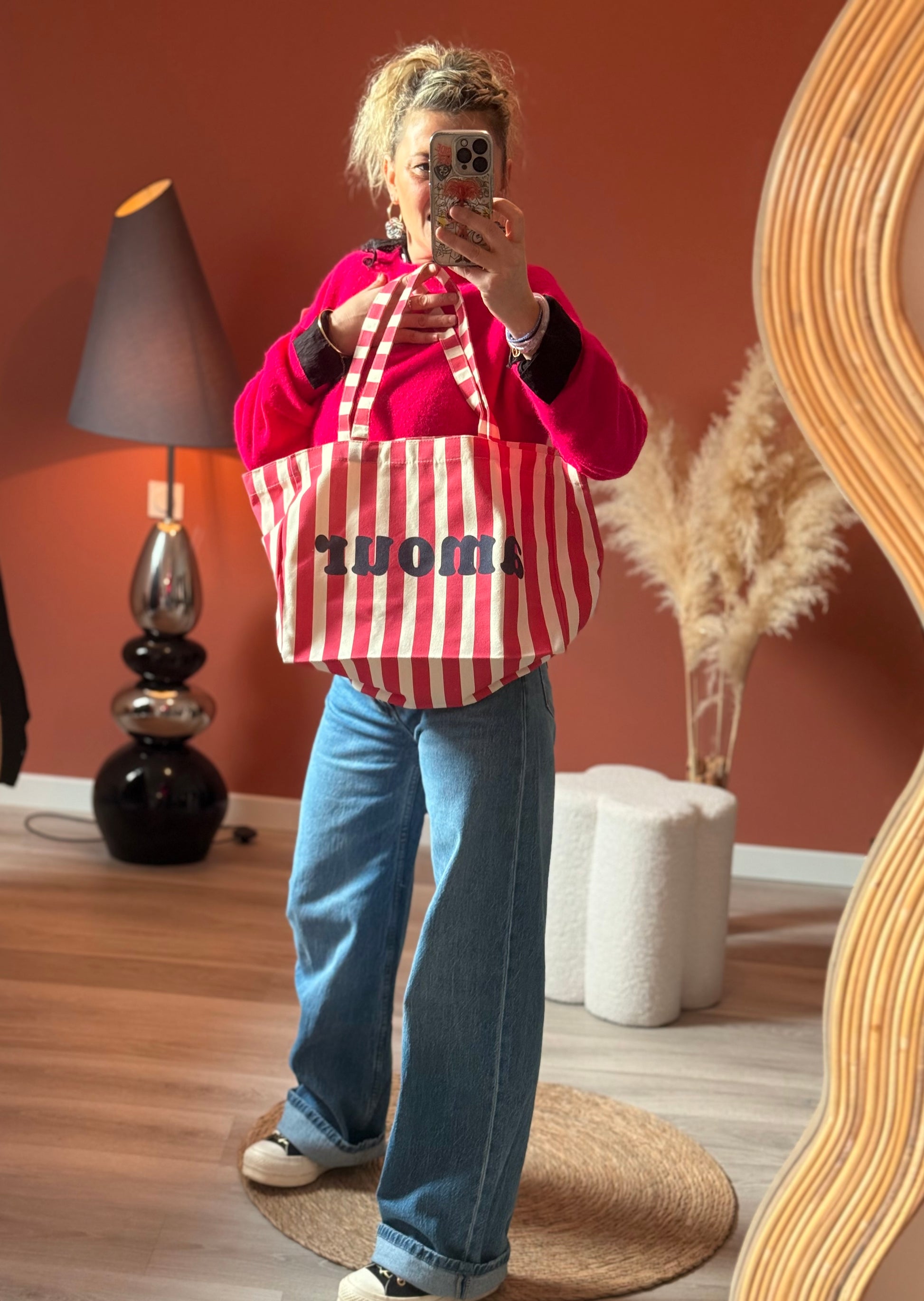 Totebag À Rayure Avec « AMOUR » imprimé Dessus