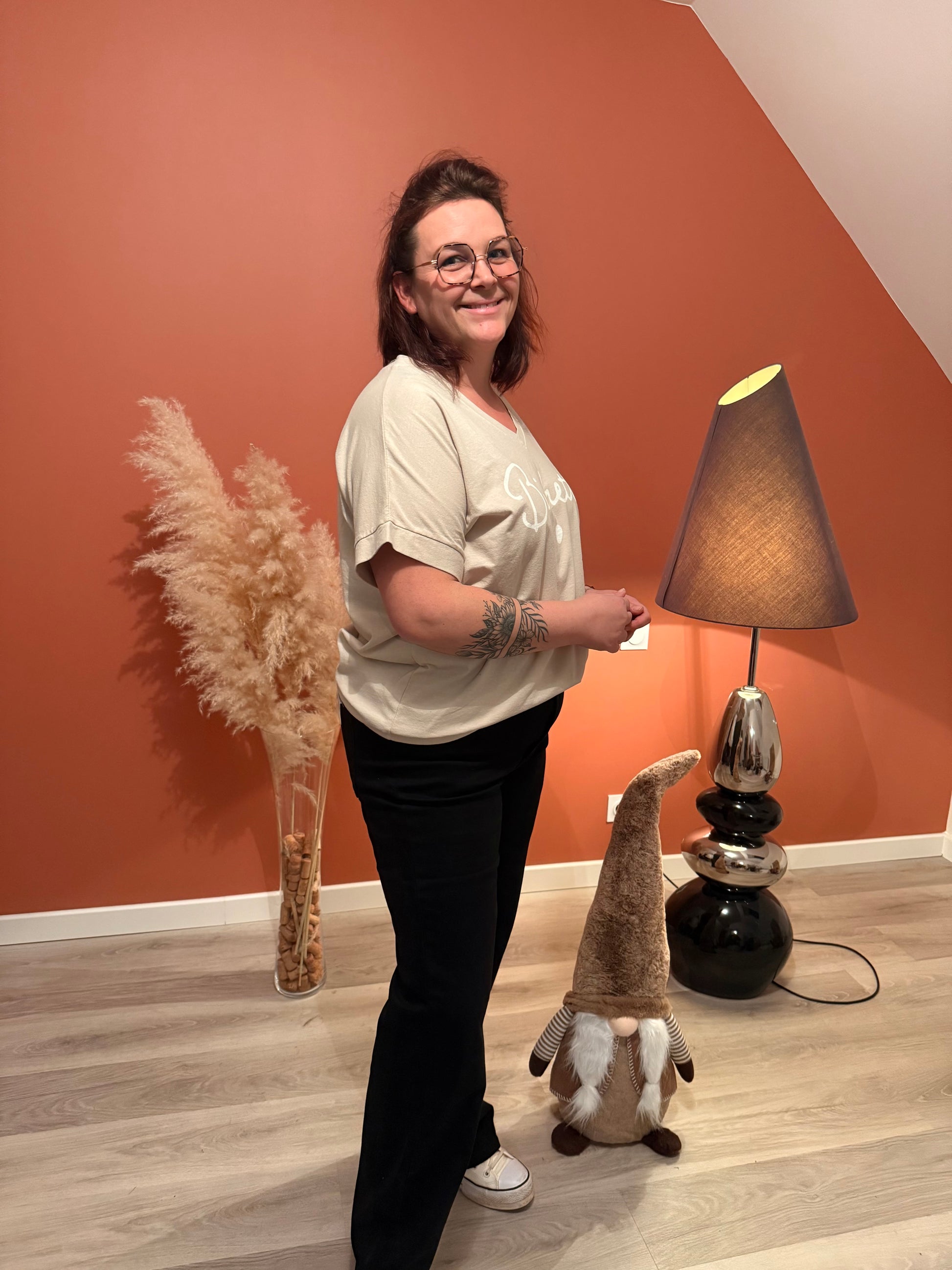 Adoptez un look casual chic avec ce tee-shirt  à la fois confortable et plein de charme. Avec un col V, et son Ă©criture Bichette đ€
